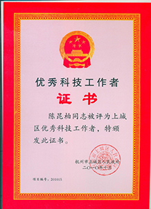 陳昆柏同志被評(píng)為上城區(qū)優(yōu)秀科技工作者