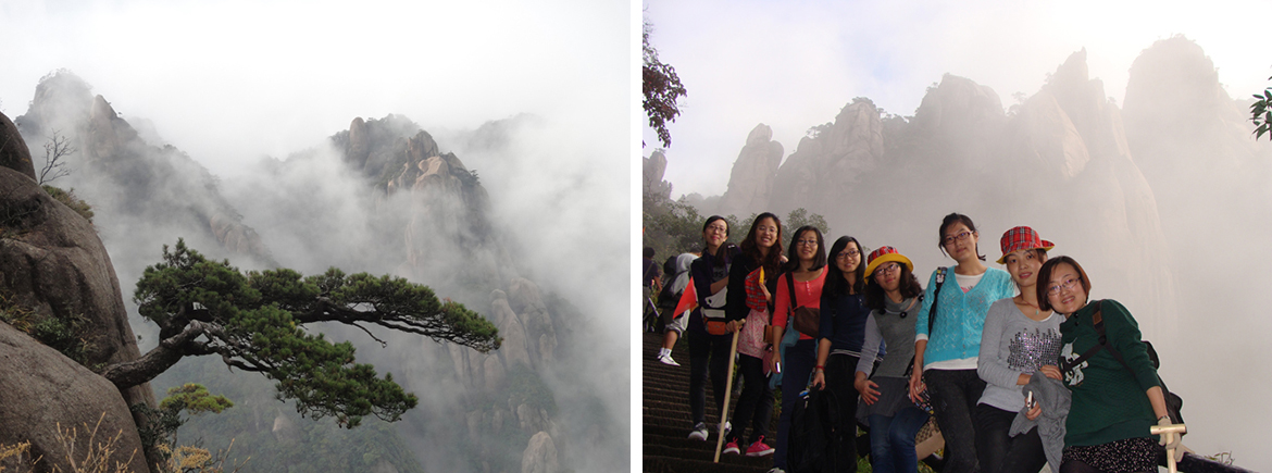 一路上,聽著導游的介紹,我們欣賞到了“司春女神”、“玉女開懷”、“觀音賞曲”等幾個著名的風景,其他的都在云霧中躲藏著,此次無緣相見。但是,我覺得對于大家來說,一群人在一起游玩,這里的一樹一石都是景色,興致勃勃的游客就是風景。