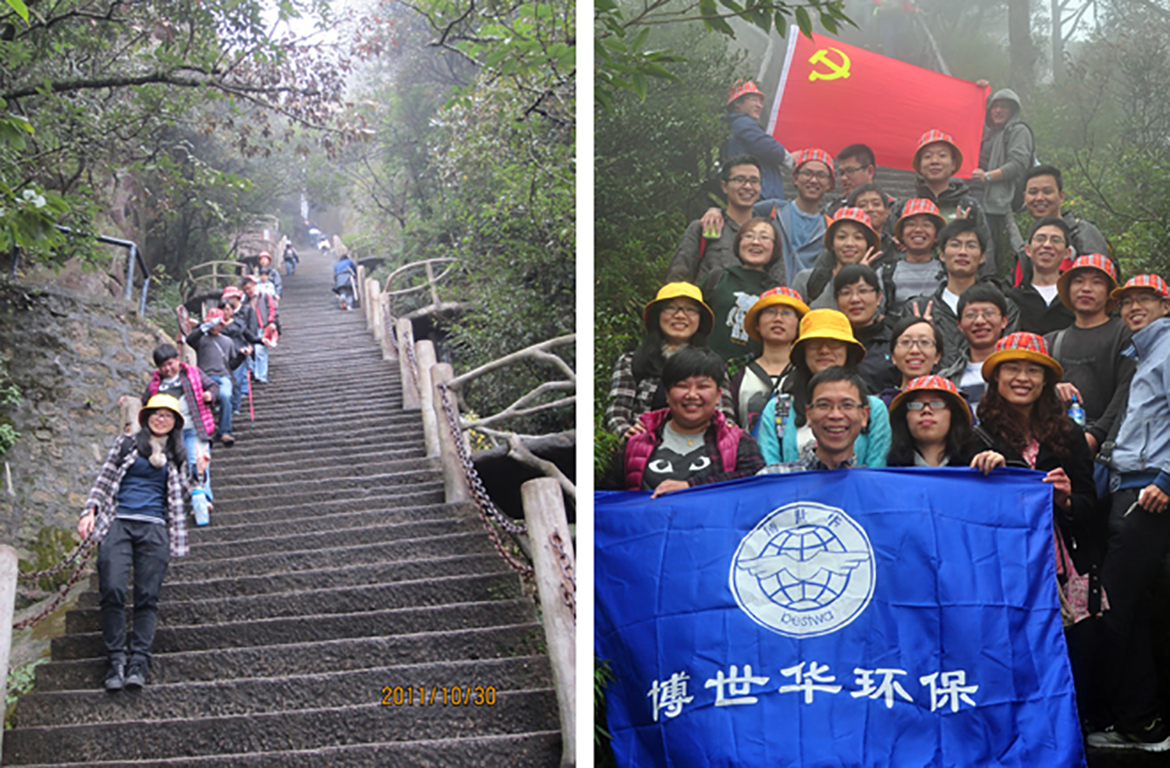 下山途中,時不時的要經(jīng)歷陡峭的階梯,同事之間相互幫助,列隊緩緩前進,原來的恐懼也在大家的鼓勵下得到釋放,在鏡頭前還是笑容滿面。