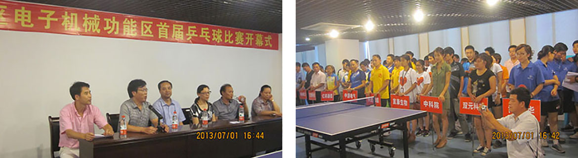 2013年7月1日,上城區(qū)電子機械功能區(qū)首屆乒乓球賽在園區(qū)管委會4樓舉行。本次共有14支隊伍參賽,來自園區(qū)的中瑞科技、中源電氣、海興電力、中科院等單位近百名運動員參加了比賽。