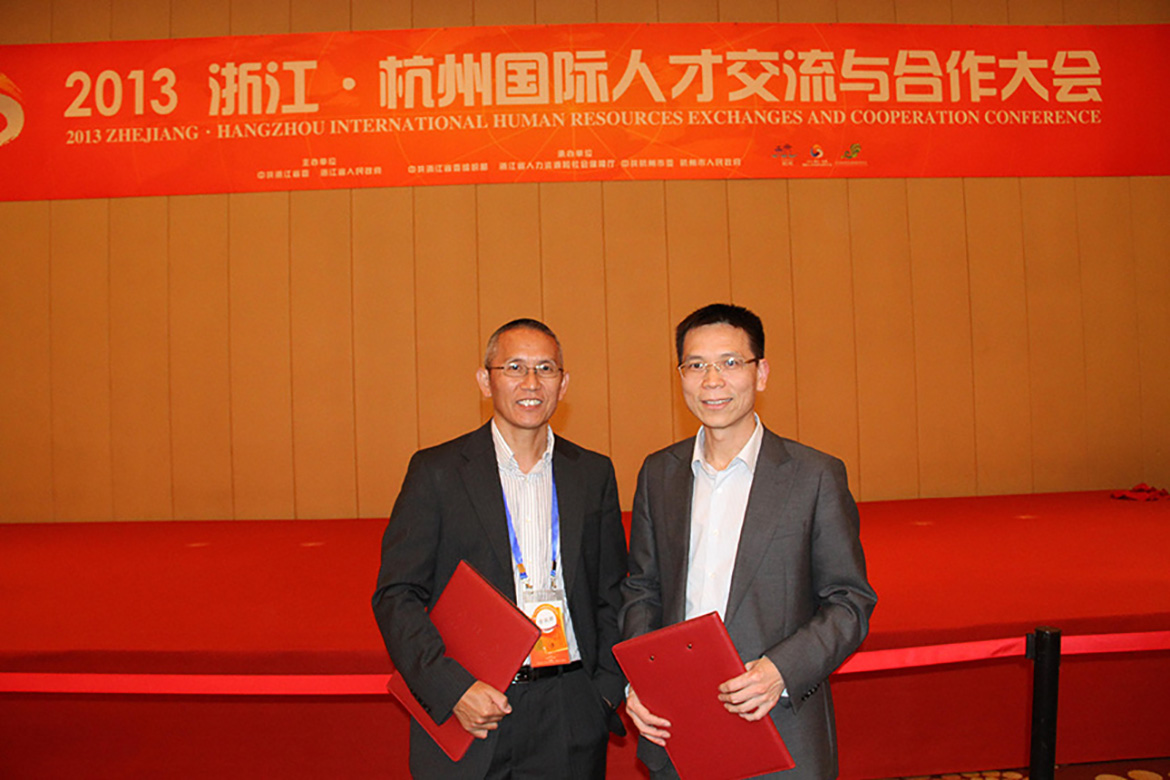 11月6日,2013浙江·杭州國(guó)際人才交流與合作大會(huì)在錢江新城隆重召開。我公司與美國(guó)金氏環(huán)保公司合作協(xié)議,作為全市三十個(gè)合作項(xiàng)目之一,也是上城區(qū)唯一的項(xiàng)目,在大會(huì)上簽訂。常務(wù)副總經(jīng)理王衛(wèi)民代表博世華公司與金氏環(huán)保公司董事長(zhǎng)金博士在簽約儀式上交換了合作協(xié)議,浙江省組織部副部長(zhǎng)、省委人才辦主任姚志文等省市領(lǐng)導(dǎo)見證了這一時(shí)刻。