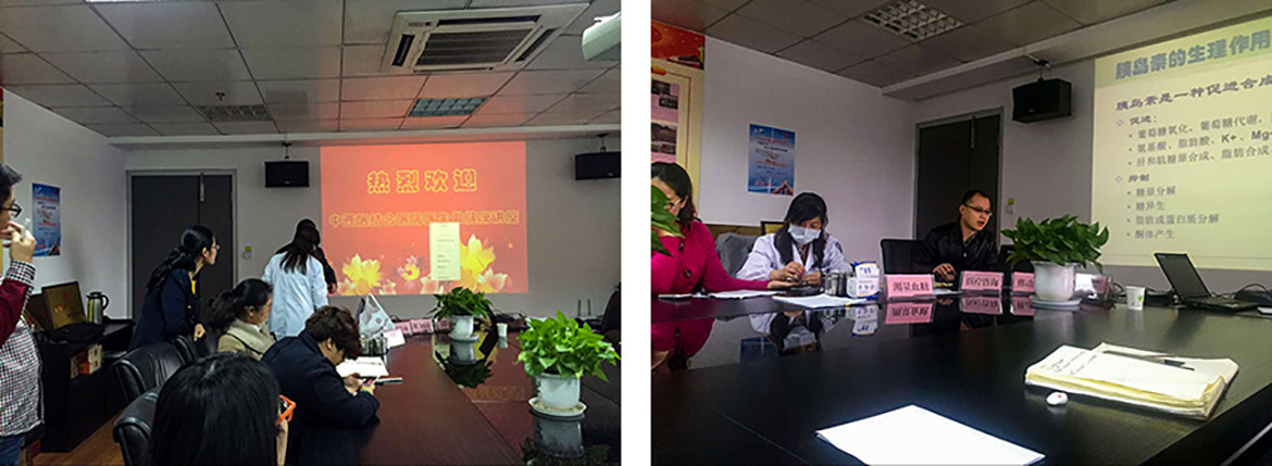 醫(yī)生分析公司存在比較多的健康問(wèn)題是血脂高、血糖高、脂肪肝、高尿酸血癥以及甲狀腺結(jié)節(jié)等。對(duì)于脂肪肝,醫(yī)生重點(diǎn)分析了其形成原理,讓我們更加懂得了合理飲食的重要性。而對(duì)于血糖高的問(wèn)題,醫(yī)生帶了血糖檢測(cè)儀,給參會(huì)的每個(gè)人免費(fèi)做了血糖檢測(cè),并講解了血糖和糖尿病的相關(guān)醫(yī)學(xué)知識(shí),尤其是糖尿病現(xiàn)在已是國(guó)人的第二大健康殺手,必須引起重視,所以醫(yī)生重點(diǎn)講了控制血糖,糖尿病的治療和預(yù)防措施。甲狀腺結(jié)節(jié)也是公司很多員工都存在的健康問(wèn)題,醫(yī)生也對(duì)甲狀腺結(jié)節(jié)的知識(shí)做了介紹,重點(diǎn)是定期檢查,注意飲食。期間也有員工就自己的健康問(wèn)題做了咨詢,也有員工帶了自己的體檢報(bào)告給醫(yī)生,醫(yī)生都做了認(rèn)真的講解。