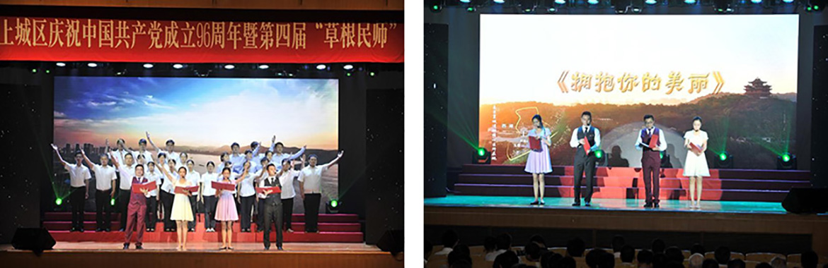 為迎接黨的96歲生日,2017年6月30日上午,由中共杭州市上城區(qū)委員會主辦的上城區(qū)慶祝中國共產(chǎn)黨成立96周年暨第四屆“草根名師”講堂在上城區(qū)政府3樓大禮堂隆重舉行。區(qū)委對先進基層黨組織、優(yōu)秀共產(chǎn)黨員、優(yōu)秀黨務(wù)工作者進行了表彰,整臺盛會通過《擔當職責》、《奉獻之美》、《向你看齊》與《創(chuàng)新之力》四個篇章,弘揚了普通黨員甘于奉獻、全心全意為人民服務(wù)的崇高精神。