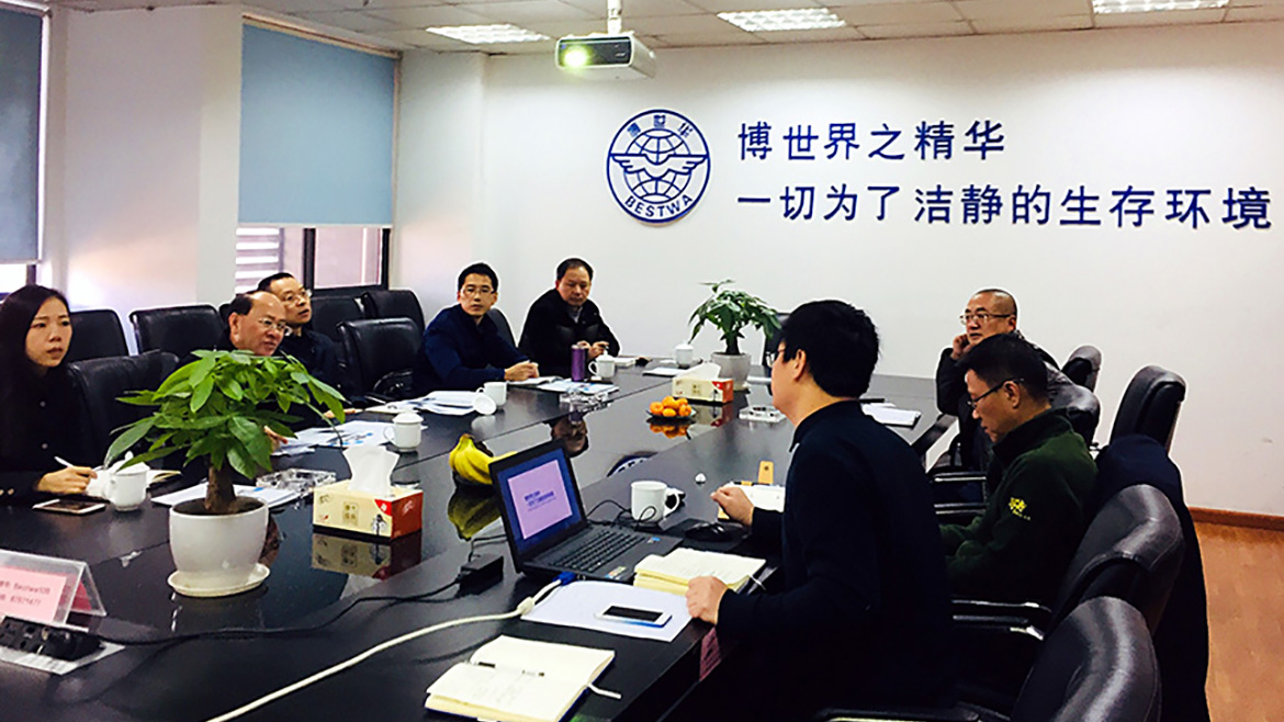 博世華環(huán)保負(fù)責(zé)人向經(jīng)信委調(diào)研工作組介紹了博世華總部以及承擔(dān)環(huán)保裝備生產(chǎn)的貝格勒全資子公司的生產(chǎn)經(jīng)營情況,并與調(diào)研工作組就新形勢下環(huán)保設(shè)備生產(chǎn)的轉(zhuǎn)型升級(jí)及工程管理向工程服務(wù)的延伸,做了深入探討。