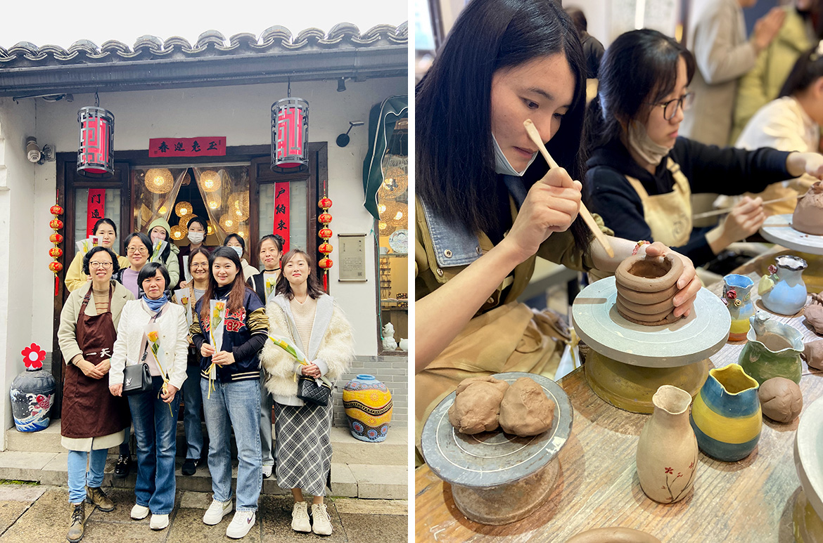 大運(yùn)河貫穿南北,它南越長(zhǎng)江,流經(jīng)江蘇、浙江。北越黃河,流經(jīng)魯冀,煙波浩渺幾千里。這是與橫貫東西的萬里長(zhǎng)城并稱于世的偉大奇跡。仰望,晴空萬里,京杭大運(yùn)河如飄蕩的碧玉帶,機(jī)動(dòng)船破浪航行。兩岸,楊柳在迎著春風(fēng)吐翠,水面波光粼粼,古色古香的小河直街人山人海。值此三八國(guó)際婦女節(jié),在這個(gè)被“寵愛”的日子里,公司工會(huì)組織全體女員工“品運(yùn)河文化,做手工陶藝”活動(dòng)。忘卻煩惱記錄運(yùn)河沿途的春日美景,親手制作屬于自己的陶藝作品,心情隨春天一同蘇醒。